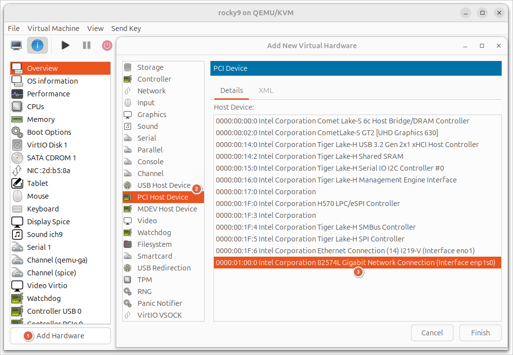 Let’s take a quick look on how NIC passthrough works in Virtual Machine Manager GUI.